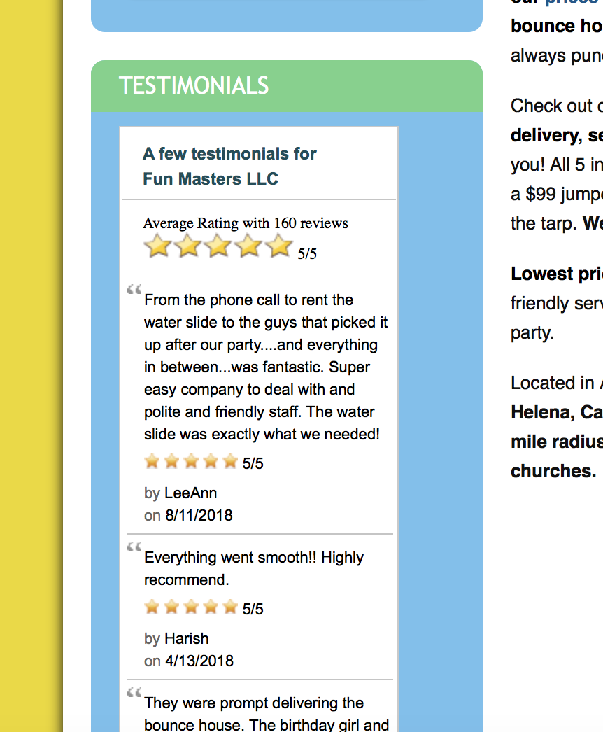 I do see you have your testimonials showing up on your page...I have attached a screenshot. Is this what you mean?