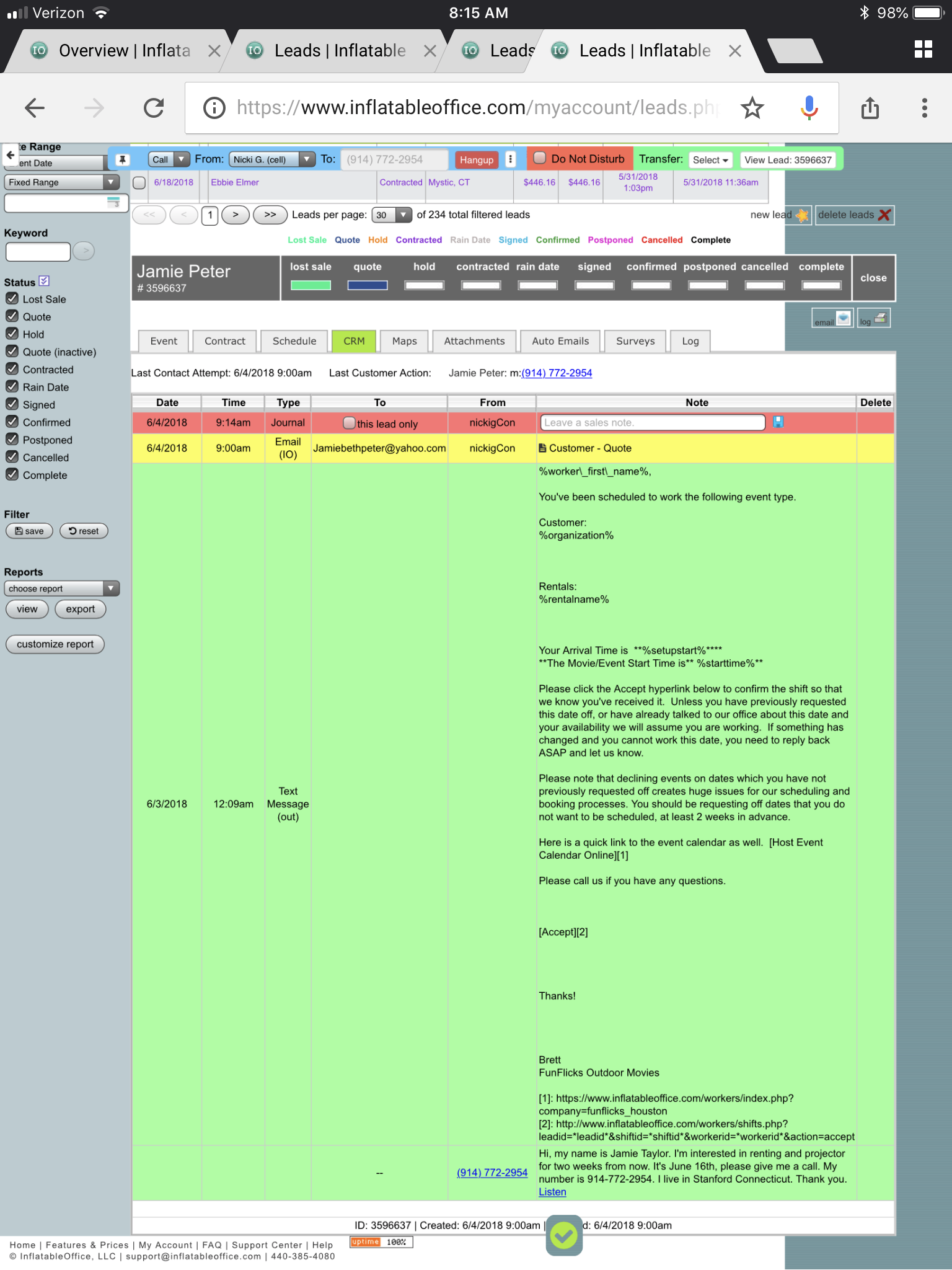 Rando CRM note added to all my leads