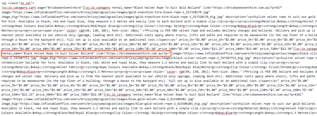ie. they should be entered as the full title name: https://brisbaneeventhire.com.au/fencing-barriers/white-velvet-rope-to-suit-silver-bollard/