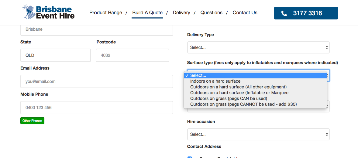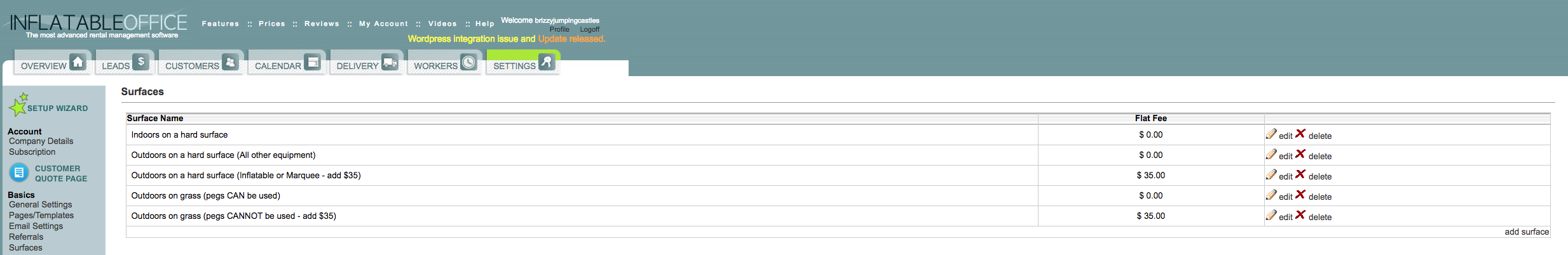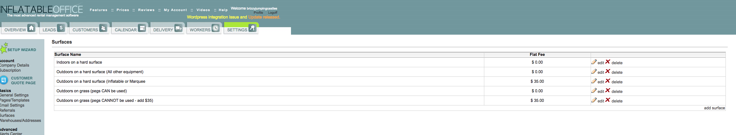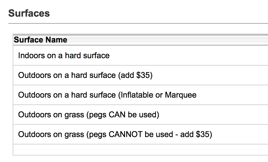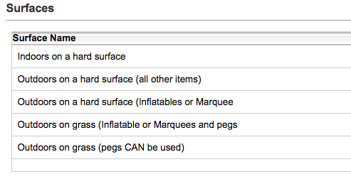 We tried to alter the wording associated with our surface fees in order to distinguish between normal event hire products and inflatables/marquees ie. an inflatable should incur a fee but a table and chair should not.