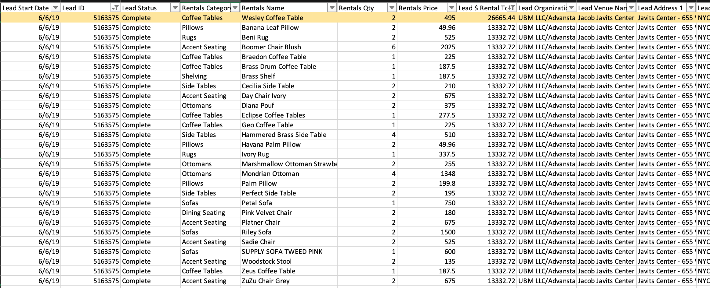 I put together a Line Item report. This is one order, but I do no understand why this single line is showing a different $ Rental Total than the other items on the lead. See highlighted top row in attachment.