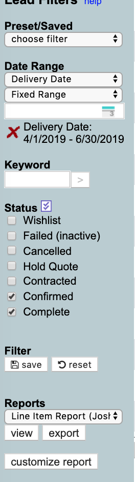No, there's nothing I had filtered through the "group by". The only filter is the Delivery Date by Date Range (April-June)) and Confirmed/Completed statuses.